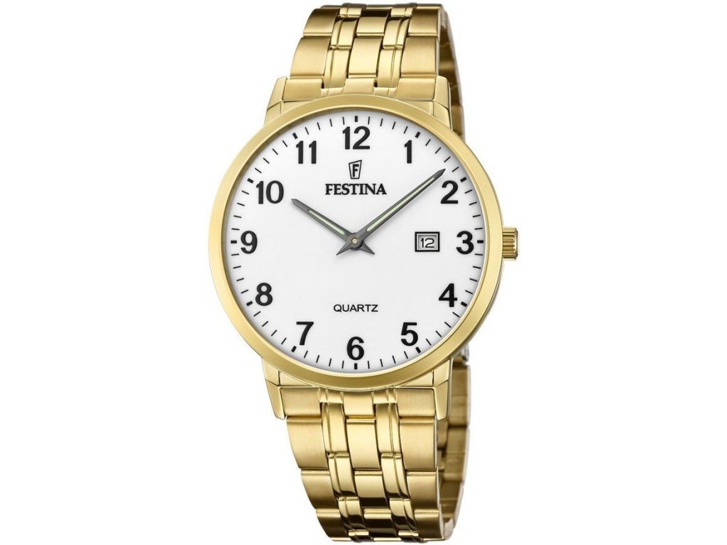 Klasické pánské hodinky zlacené speciální technikou PVD. Ciferník obsahuje pouze výborně čitelné arabské číslice a ručičky s tenkou luminiscenční vrstvou. Samozřejmostí je také nezbytná datumovka na třetí pozici