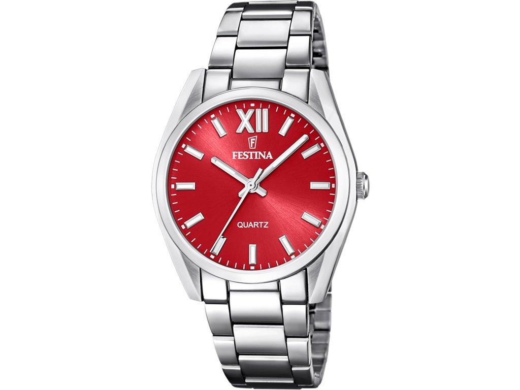 Dámské hodinky na ocelovém tahu vhodné pro každou příležitost. Číselník sytě červené barvy upoutá nejen Vaši pozornost. Díky vodotěsnosti 5 ATM můžete s hodinkami plavat.